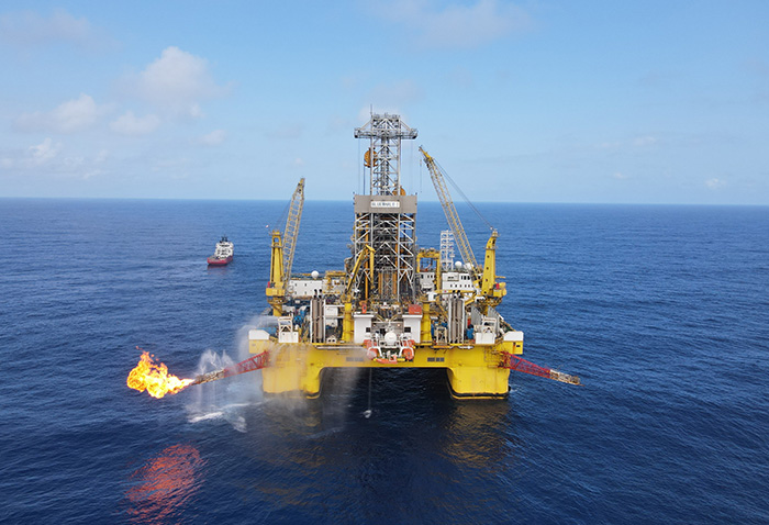 BLUEWHALEⅠis the world's most advanced semi-submersible drilling rig with dual derricks to operate in the ultra-deep-water . With Frigstad providing basic design, CIMC Raffles completed all detail design, construction design, construction and commissioning. Compared with the traditional single derrick platform, Blue Whale I is equipped with an efficient hydraulic dual derrick and a global leading closed-loop power system from Siemens, which can improve the operation efficiency by 30% and save fuel consumption by 10%. This rig was awarded “the best drilling technology ” in 2014 World Oil and “the best design highlights” the 2016 OTC .