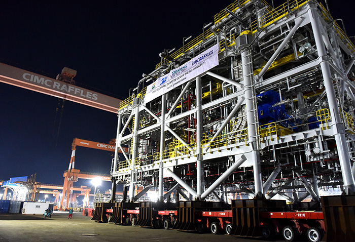 MERO 3 是中集來福士為馬來西亞國際航運公司(MISC)關于FPSO改造、模塊建造和模塊總裝的項目,改造后的船長約330米、寬約70米、深約30米,存儲容量為140萬桶。改造完成后,將前往Mero油田為巴西國家石油公司作業,這是巴油目前發現的最大巖下層油田,水深約2000米。