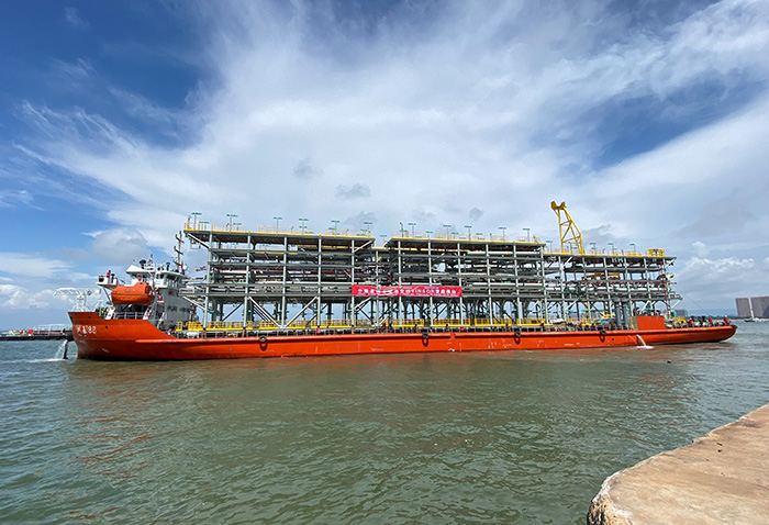 陵水(深海一號)半潛式儲油平臺是全球首個十萬噸級儲卸油半潛平臺,總重5.3萬噸,最大排水量11萬噸,擁有全球最大的桁架式半潛式上部組塊,也是國內首個1500米水深半潛式生產平臺。該平臺主要用于油氣加工、儲存和傳輸。最大儲油容量近2萬立方米,滿足30年不進塢要求?!吧詈R惶枴睔馓锿懂a后,每年將向廣東、香港、海南等地供應30億立方米天然氣。