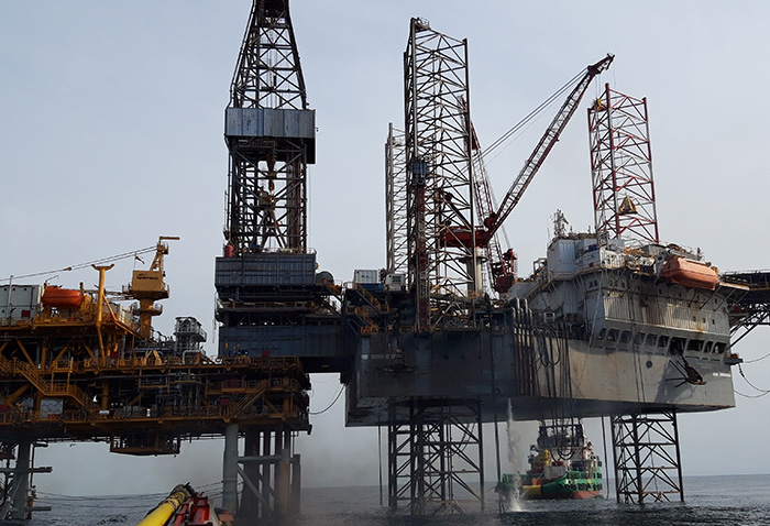 自升式鉆井平臺Caspian Driller是中集來福士在海外總包建造的第一座大型海工項目。該平臺由中集來福士進行項目管理,于2010年在俄羅斯阿斯特拉罕開始建造,2012年12月交付,2014年進入土庫曼斯坦水域,2015年開始為阿聯酋國家石油公司旗下的Dragon Oil公司提供鉆井服務。