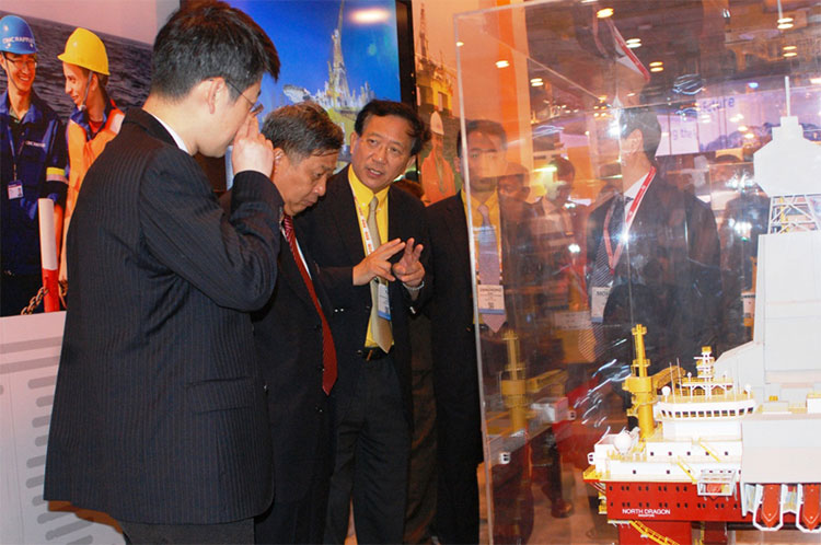 2015年5月5日,中國駐休斯敦總領事李強民到訪中集來福士OTC展臺,參觀了中集來福士設計建造的系列半潛式鉆井平臺。