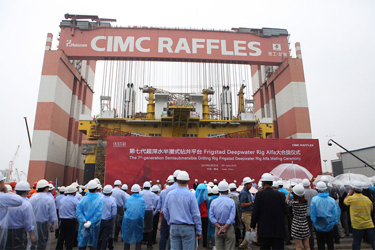 6月25日,中集來(lái)福士為挪威福瑞斯泰公司設(shè)計(jì)建造的超深水半潛式鉆井平臺(tái)“福瑞斯泰阿爾法號(hào)”在煙臺(tái)基地完成合攏。