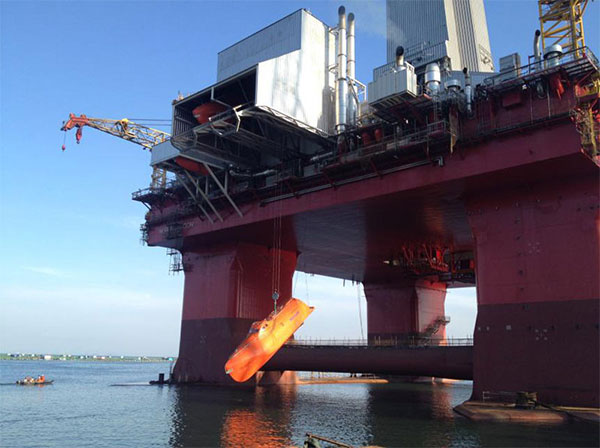 2015年8月20日下午,隨著最后一個推進器提升到位,“維京龍”推進器水下部分按計劃安裝完成。中集來福士煙臺基地深水碼頭水深達到18米,使推進器安裝能夠在岸邊完成,大大提高了安全性和經濟性。經過此前9座深水半潛式平臺推進器安裝,中集來福士已經形成了一套成熟的岸邊推進器安裝工藝,“維京龍”項目從安裝前材料準備到人員分配做到了井井有條,確保了安裝計劃的順利完成。
