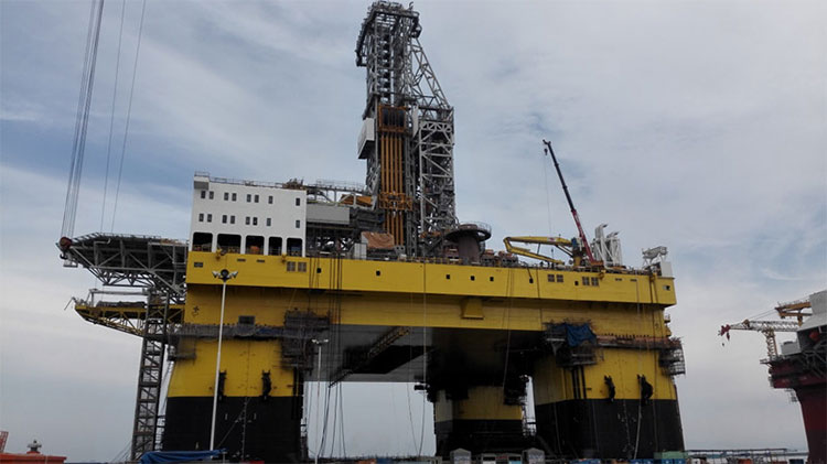 2015年8月29日,隨著D90超深水半潛式鉆井平臺的塔帽與塔架成功對位、完成安裝,全球最大的半潛式鉆井平臺完成了整個鉆井架的安裝工作。