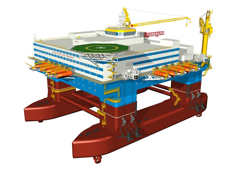 CR600半潛式生活平臺(tái)長(zhǎng)106.45米,寬68.9米,甲板面積3500平方米,最大吃水20米,配備了DP3動(dòng)力定位系統(tǒng),定員人數(shù)600人,入級(jí)美國(guó)船級(jí)社。