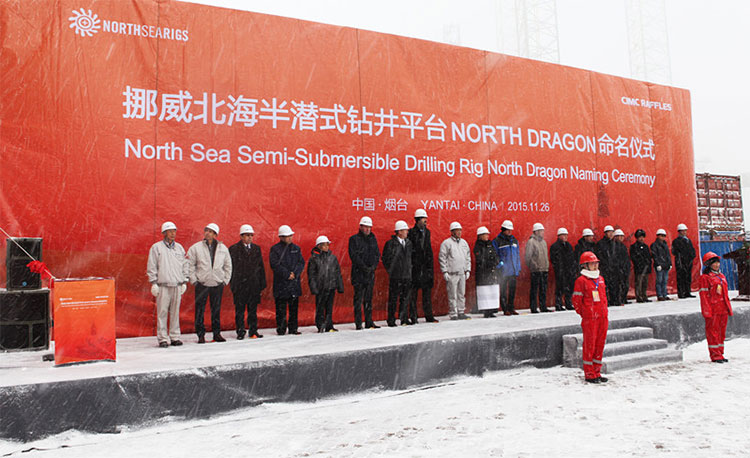 2015年11月26日,煙臺中集來福士海洋工程有限公司(以下簡稱“中集來福士”)為挪威North Sea Rigs Holdings公司建造的“維京龍”深水半潛式鉆井平臺在煙臺完工命名。這是我國建造的首座適合北極海域作業的深水半潛式鉆井平臺,擁有80%的自主知識產權,實現了“交鑰匙”總包建造。