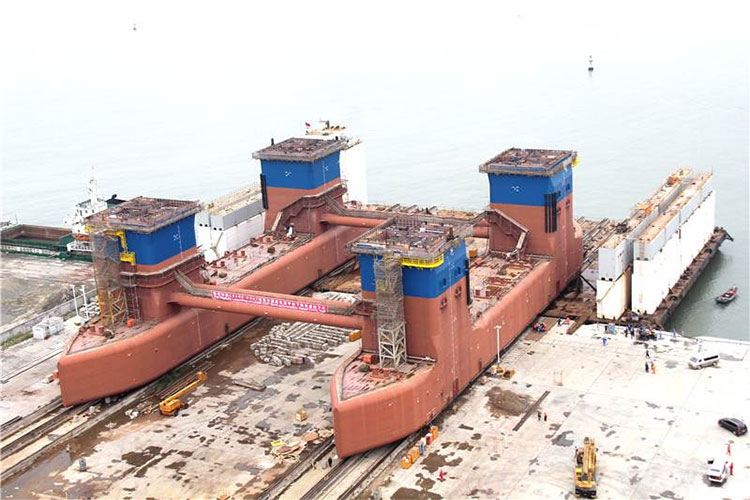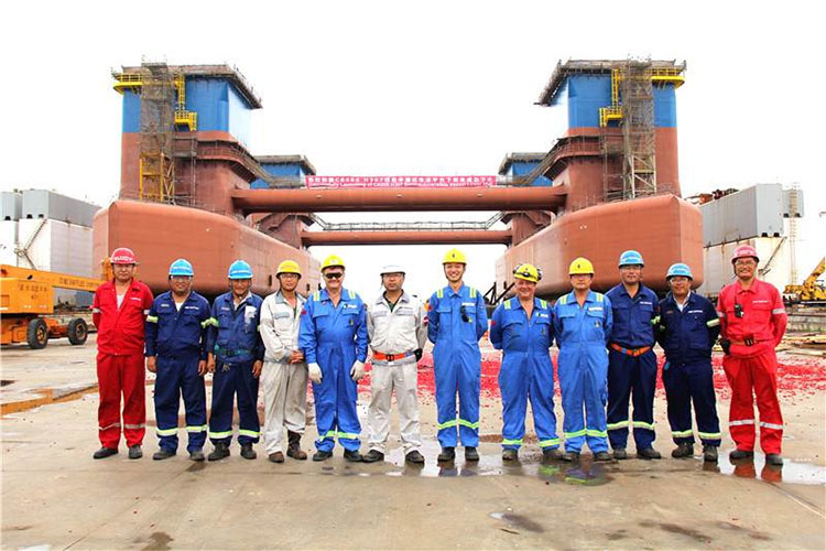 CR600項目下船體總長106.45米,寬68.90米,高36.25米,重約8460噸,入級ABS船級社。此次CR600下船體成功下水標志著下船體船臺階段性工作完成,并為項目大合攏順利進行奠定了堅實的基礎(chǔ)。