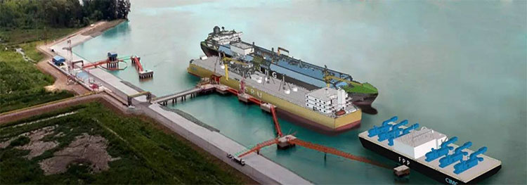 LNG-FSRU是浮式LNG再氣化裝置,為浮式電站提供能源。LNG-FSRU從LNG穿梭船上接收LNG,將LNG儲存在FSRU船體內的儲存艙中。通過再氣化設備加溫后,LNG將被氣化成氣體,然后通過柔性立管輸送到浮式電站。