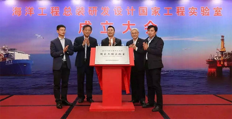 2017年4月25日,海洋工程總裝研發設計國家工程實驗室在上海成立并召開了第一屆理事會第一次會議。中船集團副總經理孫偉、中集集團副總裁于亞、上海交大副校長吳旦和上海市發改委、科技委代表一起,為國家工程實驗室揭牌。