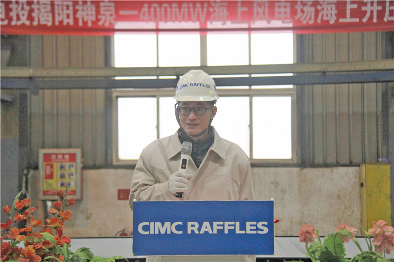 2020年1月6日上午,中集來福士承建的國家電投揭陽神泉一400MW海上升壓站項目開工儀式在海陽基地MPC車間舉行。業主單位代表國家電投廣東公司何永華、前詹風電邵斌、總包公司代表華電重工劉玉飛、于自強、監理監造公司代表熊明非、瞿大雷、楊梁梁、勘探設計單位代表及承建單位代表泰勝藍島潘思維、中集來福士海陽建造基地李永旺、鐵中寶常巖松等出席了本次開工儀式。