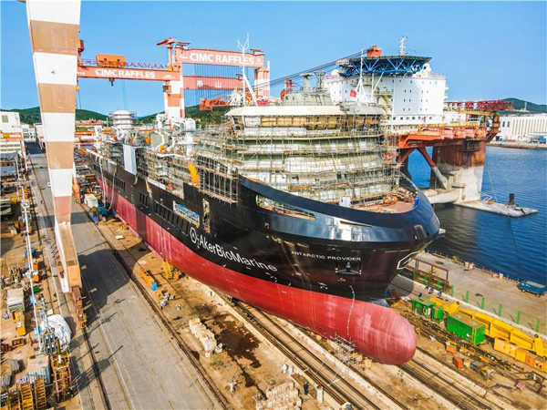 2020年9月17日,由中集來(lái)福士海洋工程有限公司(簡(jiǎn)稱“中集來(lái)福士”)為挪威阿克集團(tuán)旗下阿克海洋生物有限公司(Aker BioMarine,簡(jiǎn)稱“阿克海洋生物”)建造的南極磷蝦運(yùn)輸船項(xiàng)目在中集來(lái)福士煙臺(tái)基地順利下水。